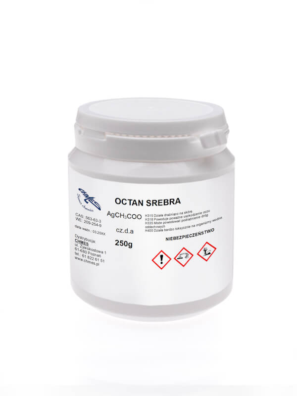 | Inne nazwy/Synonimy | Srebrowy octan, Etanian srebra(I), Octan srebrzysty, Silver acetate |